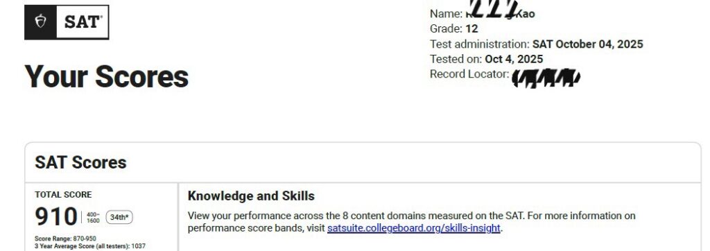 Home » 恭喜 高中部 G12 高同學取得 SAT 910分! » 未分類 » 恭喜 高中部 G12 高同學取得 SAT 910分!
