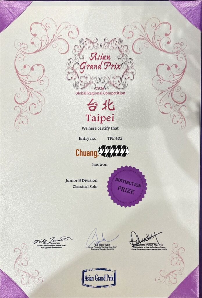 在剛落幕的 Asian Grand Prix 2026 Global Regional Competition 中,國中部 G9 莊同學以沉穩的舞台魅力與細膩的肢體語彙,榮獲——