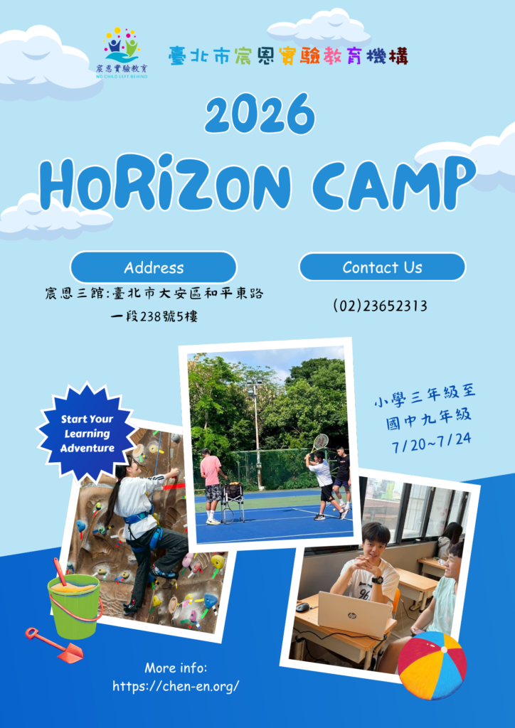 【提前預告|夏天,給孩子一個探索自己的機會】 宸恩夏季試讀營隊(2026 Chen-en Horizon Camp),將於115年5月1日星期五正式公布詳細資訊。